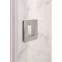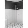 Denna duschhörna passar utmärkt till ett utrymme där en dusch behöver placeras bredvid en badrumsmöbel. Den fasta väggen och dörren kan dimensioneras så att väggen skyddar möbeln och dörren har samma bredd som det fria gångutrymmet.
