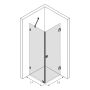 Stadig duschhörna i enkel design som skyddar badrumsmöbler mot stänkvatten genom klart och tåligt säkerhetsglas. Duschhörnan består av en fast duschvägg och en vändbar duschdörr. Dörren öppnar sig 90 grader utåt och är försedd med justerbar centrering. Centreringen strävar efter att återställa dörren till öppen respektive stängd position. Magnettätningar håller dörren tätt stängd, medan duschen används.