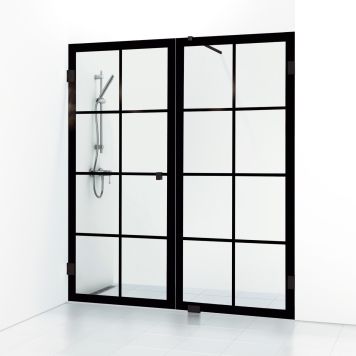 180° Rista öppningsbar dubbelnisch duschdörr med svarta spröjs!