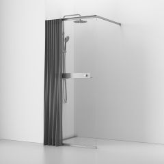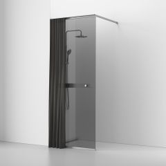 Välj önskad utförande på duschdörr. Finns att välja mellan kristallglas och rökglas med profilerna i matt aluminium och mattsvart färg, samt med eller utan hylla.