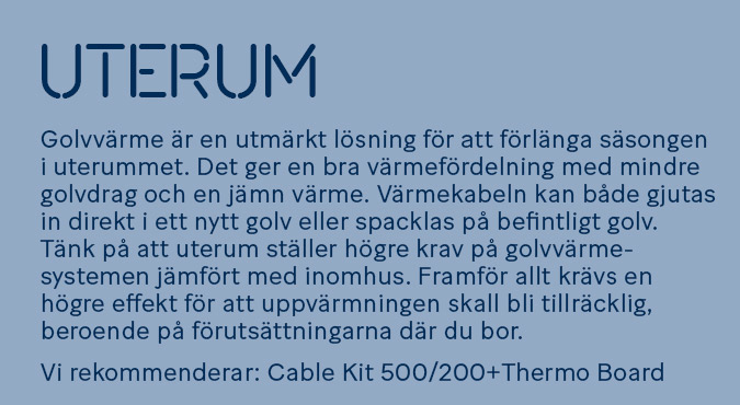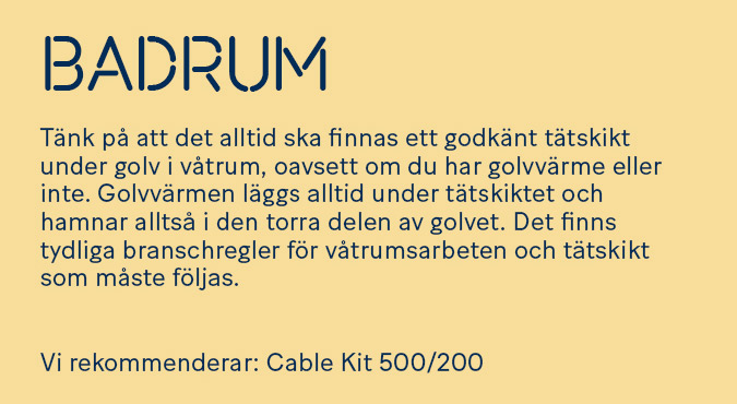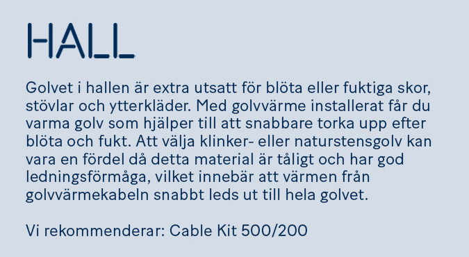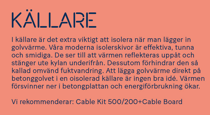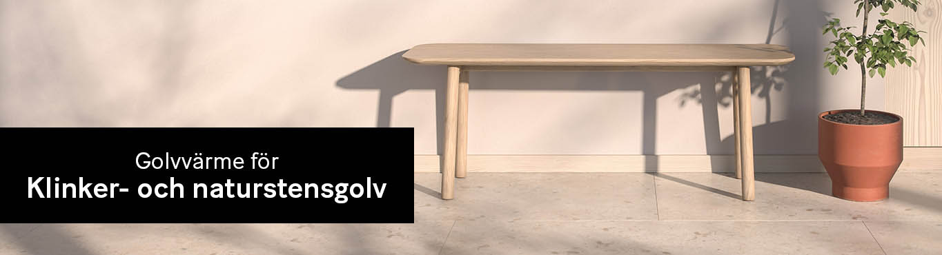 Klinker- och naturstensgolv är vanligt i badrum, hall och källare. Klinkermaterialets goda ledningsförmåga gör att vi upplever plattorna som kalla utan golvvärme. Samtidigt är det just ledningsförmågan som gör att värmen från golvvärmekabeln snabbt leds ut till hela golvet. Ju bättre isolerat golvet är undertill, desto snabbare (och därmed energieffektivare) sprids värmen. Därför rekommenderar vi att du alltid installerar ett system med våra isolerskivor för golvvärme, även om du har ett välisolerat hem.