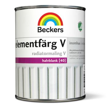 Elementfärg V är en halvblank akrylatlatexfärg avsedd för målning av värmeelement och rör inomhus. Elementfärg V är helt gulningssäker. Den har obetydlig lukt vid målning.