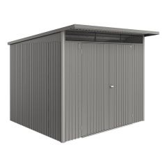 Förbättra din trädgårdsbyggnad med en extra dubbeldörr i elegant metallic silver...