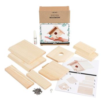 Med detta fågelholkset kan du bygga ditt egna fågelhus av ljust trä med ett 25 millimeters hål och innehåller...
