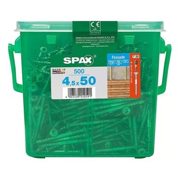 | Produktnamn | FASADSKRUV SPAX ROSTFRI A2 4,5X50 500ST |