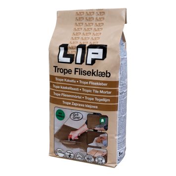 Är en flexibel och cementbunden fästmassa. LIP Trope används för uppsättning och läggning av kakel, klinker, marmor, betongplattor, sjösten, tegelsten, glasullsplattor och Rockwoolplattor mm.