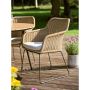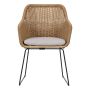 Förbättra din utomhusmiljö med denna stilrena fåtölj som kombinerar modern design med funktionalitet. Tillverkad av hållbar polyrotting i en harmonisk och naturlig färg, erbjuder denna stol både stil och komfort. Den medföljande kudden, tillverkad av slitstark polyester, ger extra bekvämlighet och är perfekt för långa stunder av avkoppling i trädgården eller på altanen. Med en sittbredd och sittdjup på 43 centimeter samt en armstödshöjd på 66 centimeter, är denna stol designad för att ge dig god komfort under avkopplande stunder. Den vridna runda polyrottingen ger en unik touch och säkerställer att stolen är både robust och estetiskt tilltalande. Kombinera gärna karmstolen med ett passande bord för en fin helhet.