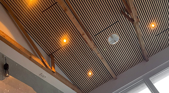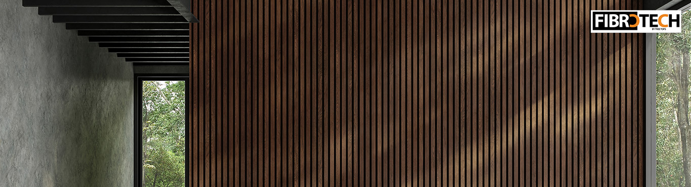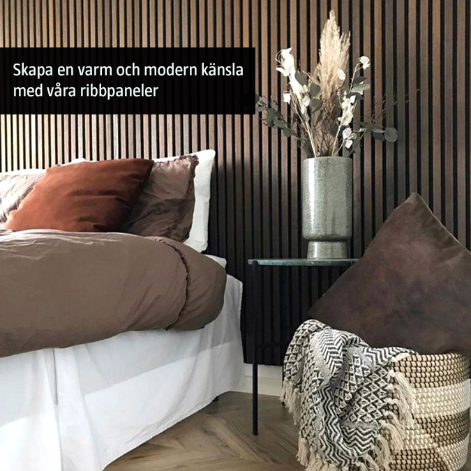 Tillsammans skapar ribbpanelerna ett harmoniskt och varmt mönster med optimala förutsättningar för montering på vägg och tak. Ta med naturen in i ditt hem! Det är verkligen känslan man får med Fibrotechs ribbpaneler oavsett om man föredrar en mörkare eller ljusare nyans.