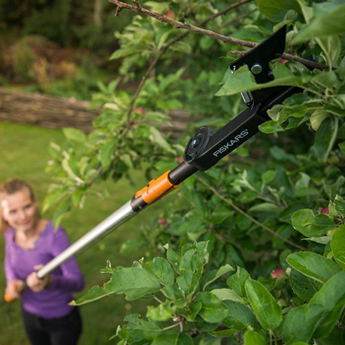 Genial universalklippare som gör det enkelt att klippa såväl högt sittande grenar som grenar nära marken. Det justerbara skaftet gör att du inte behöver arbeta från stege eller böja dig och stå på knä för att komma åt att klippa.