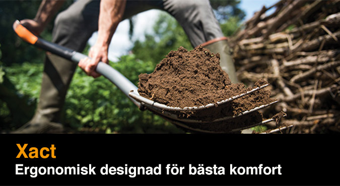Vi har revolutionerat designprinciperna för klassiska redskap och utvecklat produkter som är bättre, smartare, effektivare och mer användarvänliga. Alla grävredskap i Fiskars Xact™ serie är resultatet av omfattande tester av material, konstruktion, ergonomi och prestanda. Resultatet talar för sig själv. Kombinationen av komposit och stål gör redskapen lätta medan den ergonomiska designen minskar belastningen på muskler och förbättrar gräveffektiviteten. Spadarna och grepen kommer i 2 olika storlekar (M och L) vilket gör att redskapen enkelt kan anpassas efter användarens längd.