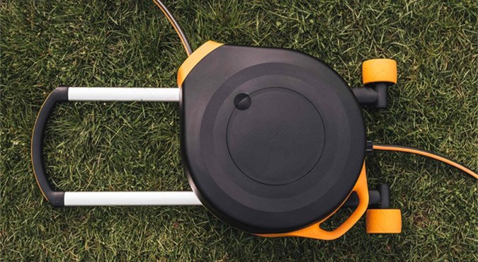 Slangen är mycket enkel att rulla in efter användning. Waterwheel XL finns komplett med ett allt-i-ett-set, eller utan slang om du redan har en slang hemma.