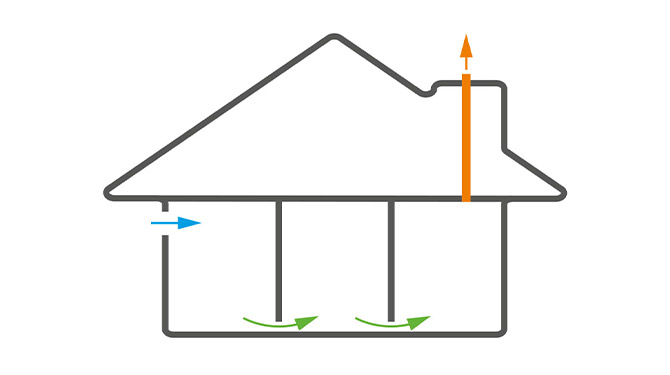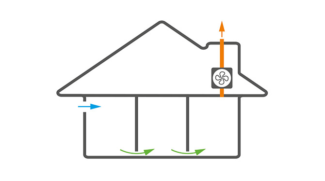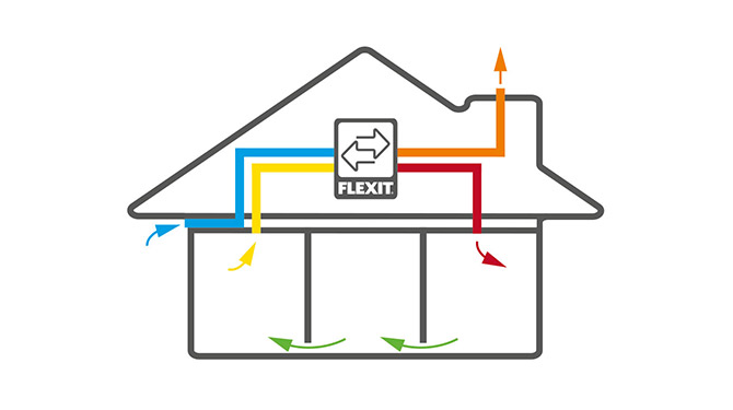 För att ventilation ska fungera i ett hus, måste luften kunna cirkulera även om dörrarna är stängda. Luftflödet mellan alla rum i bostaden kan säkerställas genom att till exempel ha tröskelfria dörrar. Ventilationen kan anpassas efter behov genom att ansluta olika givare som t.ex. fukt-, rörelse- och CO2-givare.