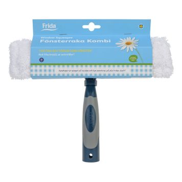 En kombinerad mikrofiber och gummiraka som gör det extra enkelt att tvätta dina fönster. Handtaget är gängat på insidan och passar på alla Fridas skaft. Gummit är av samma höga kvalitet som i övriga Fridas fönsterrakor.