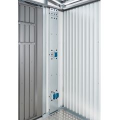 - Två stycken hyllor i varmgalvaniserad stålplåt, djup: 24,5 cm & bredd: 72 cm, och två hyllskenor. Max. belastning per hylla: 15 kg.