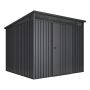 Allisters trädgårdsskjul erbjuder en rymlig förvaringslösning med en yta på 5,5 m², perfekt för att lagra allt från små till medelstora tillbehör och verktyg. Den moderna designen i antracitgrå färg ger boden ett unikt och stilrent utseende. Den stora, funktionella luckan gör det enkelt att komma åt och organisera dina tillhörigheter, oavsett om det är cyklar, trädgårdsmöbler, verktyg, skottkärror eller gräsklippare. Skjulet är tillverkat av metall, vilket ger en robust och hållbar konstruktion för långvarig användning!