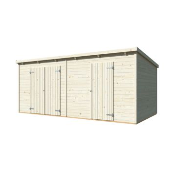 Stugan Kurt är den perfekta lösningen för dig som behöver ett rejält och extra förvaringsutrymme utan att behöva kompromissa med varken stil eller funktionalitet. Med en mycket generös golvyta på 14,2 kvadratmeter erbjuder detta träförråd gott om plats för alla dina tillhörigheter, från trädgårdsmaskiner och cyklar till säsongsbetonade föremål och verktyg. Den mycket praktiska designen inkluderar både en bred pardörr och en smidig enkeldörr, vilket gör det extremt enkelt att komma åt och organisera dina saker oavsett storlek. Detta förråd är tillverkat av högkvalitativ nordisk gran med en väggtjocklek på 19 millimeter, vilket gör konstruktionen både hållbar och estetiskt tilltalande i trädgården. Förrådet levereras som en komplett byggsats med färdigkapade delar och alla nödvändiga fästelement, vilket säkerställer att monteringen blir både enkel och smidig för dig som hemmafixare!