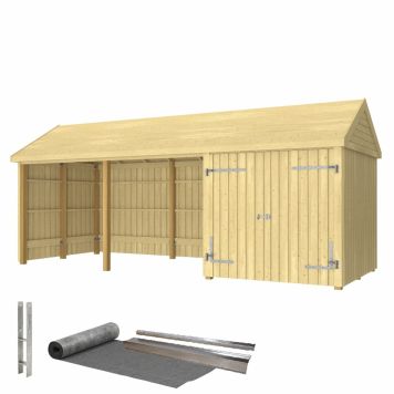 | Produktnamn | FÖRRÅD PLUS CLASSIC MULTI GARDEN DUBBELDÖRR/ÖPPEN FRONT INKL TAKPAPP/ALULIST/STOLPFOT OBEHANDLAD 14,5M² |