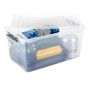 Q-line 120 liters förvaringsbox från Sunware är en mycket praktisk, rektangulär och låg förvaringslåda som är idealisk för att hålla dina ägodelar fukt och dammfria. Med sin smarta avlånga design kan du enkelt skjuta in den här lådan under sängen. Den är perfekt för att förvara kläder, lakan och handdukar utan risk för mal. Men det är inte bara kläder som får plats i den utan det fungerar även utmärkt för att organisera andra hushållsartiklar såsom viktiga papper, leksaker, fotoalbum och läsböcker. Den är lätt och stapla och har rejäla stängningsklämmor som håller locket på plats. Perfekt att kombinera med andra förvaringsboxstorlekar från Sunware!