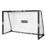 Ett fotbollsmål tillverkat av galvaniserat stål i en mycket robust konstruktion. Målet står stadigt på marken, vilket ger en trygg spelupplevelse. Den pulverlackerade ytan ger ett långvarigt rostskydd, medan stolpar och ribba är täckta med en nyutvecklad skumöverdrag som skyddar både målramen och minskar risken för skador vid kollision. Nätet är väderbeständigt och har små rutor för ökad säkerhet för barn. Detta mål är perfekt för både trädgården och lekplatsen, och med sina kompakta dimensioner är det enkelt att placera var som helst.