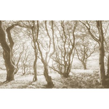 Denna tapet har en hemtrevlig och lugnande känsla. Motivet visar utsikten av en vacker skog ur ett artistiskt perspektiv.