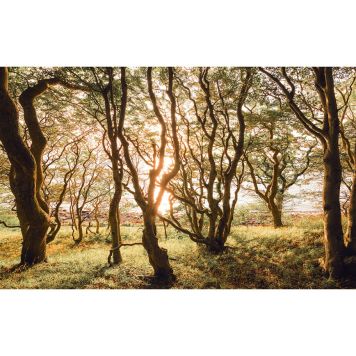 Denna tapet har en hemtrevlig och lugnande känsla. Motivet visar utsikten av en varm och härlig skog ur ett artistiskt perspektiv.