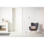 Sätt upp tapeten längs strecken på väggen. Stryk uppifrån och nedåt för att jämna ut tapeten, hjälp till med handen från mitten ut mot kanterna för att kontrollera att det inte finns några bubblor kvar. Vi rekommenderar att tapeten överlappas med ca. 2–3 mm eftersom den kan krympa när den torkar.