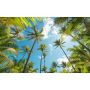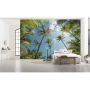 Tapet med motiv av en blå himmel, strålande sol och vackra kokospalmer. Perfekt för dig som gillar naturen.