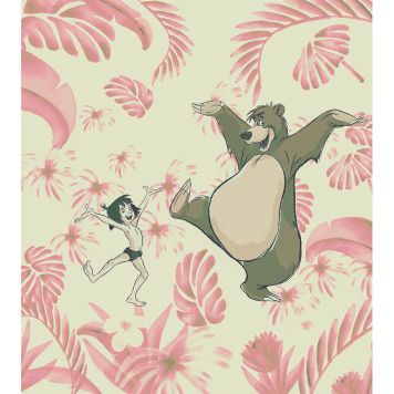 Detta är en tapet med motiv av Mowgli, Baloo från Djungelboken i en lekfull design. Det är ett kanonbra val för en härlig atmosfär i barnrummet.