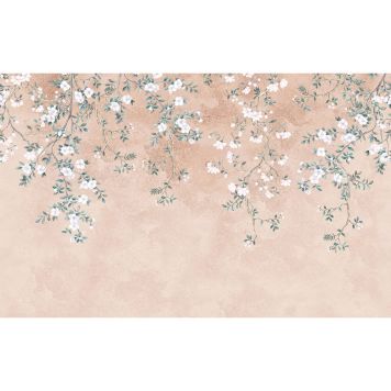 Detta är en tapet med vackert motiv av vattenmålade blommor. Ett enastående motiv för ett fridfullt rum.