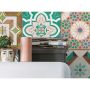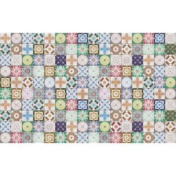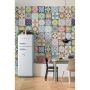 Denna tapet har ett motiv av en mixmosaik inspirerad av marokansk marrakech. Det är en enastående tapet för ett livligt och hemtrevligt rum.
