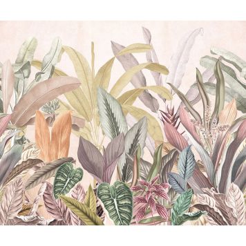 Tapet med extravagant motiv och färgskalan av en botanisk trädgård. Perfekt för dig som vill ha en varm atmosfär. Även kanon som accentvägg.