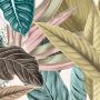 Denna tapet har ett motiv av vackra växter som sträcker sig i ett extravagant färgschema. Ett enastående motiv för en lyxigare atmosfär.