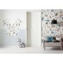 Sätt upp tapeten längs strecken på väggen. Stryk uppifrån och nedåt för att jämna ut tapeten, hjälp till med handen från mitten ut mot kanterna för att kontrollera att det inte finns några bubblor kvar. Vi rekommenderar att tapeten överlappas med ca. 2–3 mm eftersom den kan krympa när den torkar.