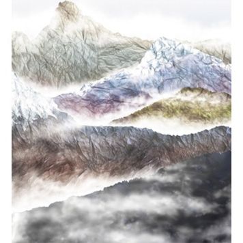Ett papperscollage reser sig för att bilda färgglada bergstoppar.