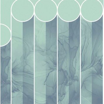 Den här fototapeten har en snygg grön design med snygga former, de flödande formerna framträder i sin graciösa asymmetri som om de upplysts av ett cirkulärt rampljus.