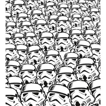 Detta är en tapet med motiv av en vägg med Stormtroopers i en svartvit design. Känner du dig som del av det galaktiska imperiet? Då är detta för dig! Det är ett kanonbra val för fans av filmserien.