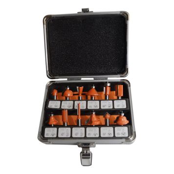 Satsen innehåller 12 stycken olika fräsar med 8 millimeters skaft. Satsen klarar många olika arbeten i de flesta typer av trä. Avrundningsstålet är det stål man normalt använder till runda kanter på exempelvis bord och hyllor medan snedställda fasningsfrässtål ger fasade kanter. Därtill kommer även ett antal profilstål. Stål med kula kallas vanligtvis för kantfrässtål, de skapar kanter i alla former. Satsen levereras i en praktisk aluminiumlåda.