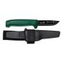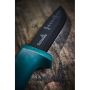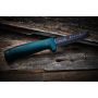 Utformad med ett större handtag vilket gör den lämpad för de tuffa uppgifterna. Bladet är av japanskt knivstål med skandinavisk slipning och har härdats till 58-60 HRC. Bladet har en elektroforetisk ytbehandling som gör att rost motstås. Den slipade ryggen är avsedd för användning av tändstål.