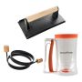 Med Blackstones smetdispenser kan du enkelt dosera upp till 7,5 deciliter smet för perfekta pannkakor varje gång. Dessutom är den mångsidig och kan användas för att göra cupcakes, muffins och mycket mer. Blackstones köttpress är tillverkad av gjutjärn, vilket ger en jämn uppvärmning och behåller värmen, perfekt för jämnt stekt bacon eller smörgåsar.
