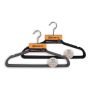 Tillverkad av stark ABS-plast med flockad yta som hindrar plaggen att glida av galgen. Den slimmade designen gör att galgen tar minimalt med plats i garderoben. Levereras i någon av färgerna svart eller grå.
