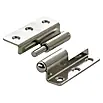 Tillverkat i stål med en färg av mässing och monteras med skruv. Gångjärnet har ett stopp åt höger.