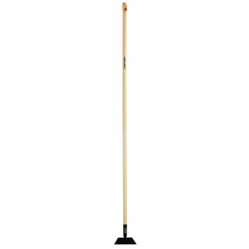 Gångskyffel med träskaft snedställd krycka och huvud i härdat stål.