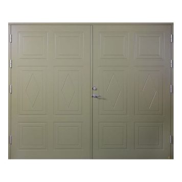Garageporten kommer vitmålad i NCS S0502-Y, bilden visar en gråmålad port NCS S5020-G70Y.