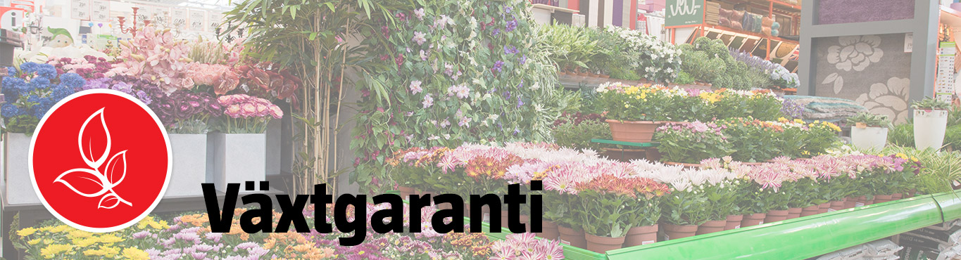 Om din fleråriga, vedartade växt inte etablerar sig (dvs. vill växa) under det första året, byter vi ut den eller ger dig pengarna tillbaka. Denna garanti gäller således bara buskar och träd, ej ett- eller fleråriga blommor. Vi ger inte ersättning för växter som utsatts för frost, uttorkning eller att växten inte passar i växtzonen.