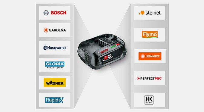 GARDENA ingår i alliansen POWER FOR ALL som är ett av de största 18V-batterisystemen som inkluderar flera olika varumärken från ledande tillverkare över hela världen. Med 18V POWER FOR ALL batterisystem kan du använda samma batteri till över 150 olika produkter i hemmet och trädgården. Batteriet är kompatibelt med många andra varumärken inom alliansen.