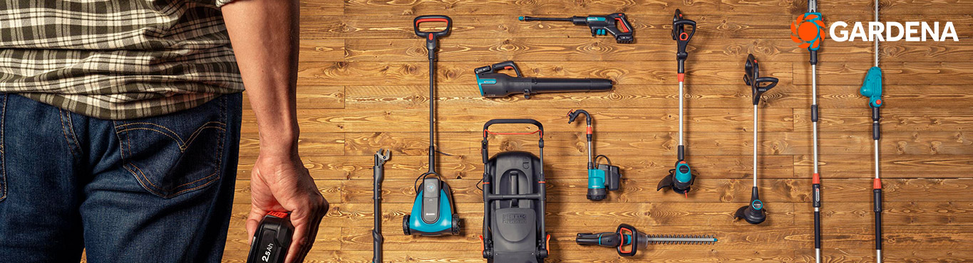 GARDENA erbjuder batteridrivna produkter för olika användningsområden: utomhusrengöring, gräsklippning, bevattning, beskärning, pumpning och vedkapning.