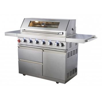 Dessutom levereras denna med fett-tråg i rostfritt stål som samlar upp allt fett från grillningen samt ett rejält 8 mm tjockt grillgaller som både håller värmen längre och ger en längre hållbarhet. Utöver dessa fantastiska egenskaper finner du också att brännarna har en elektronisk tändning via de LED-belysta vreden, vilket gör det smidigt när du snabbt vill sätta igång med grillningen. Det finns även rum för förvaring av gasoltub och grillredskap undertill.
