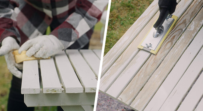 Trä som blivit uppruggat av skrapningen måste slipas. Detsamma gäller hårda och blanka färger, så att den nya färgen fäster ordentligt. Damma av ytorna och se till att allt är torrt innan du börjar måla.