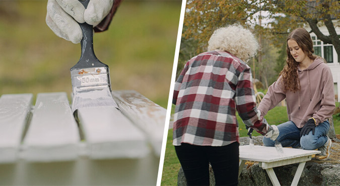 Var noga vid skarvar och ändträ. Låt färgen torka ordentligt innan du stryker på det andra lagret, följ alltid rekommendationerna på produktdatabladet.