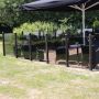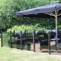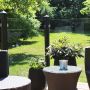 Räcket skärmar av och skapar lä samtidigt som det bevarar den rymliga känslan i din trädgård. Det kan monteras på rad, i "L"-form eller "U"-form. Varje element levereras inklusive fyra stålbeslag redo att monteras på trästolpar. Det kan monteras upp på två sätt, vid montering på mjukt underlag ska stolparna gjutas ner 45 cm under terrängen. Vid montering på fast underlag kortas stolparna av till 105 cm, använd sedan en aluminiumfot för att sätta fast stolparna. Rekommenderat är att använda HORTUS aluminiumfot. Stolpar medföljer ej.